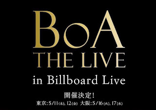 Desde la página oficial japonesa de BoA, han notificado de un nuevo concierto que hará BoA en japón en mayo. Los días 11 y 12 en la capital del país, Tokio, y en Osaka los días 16 y 17.